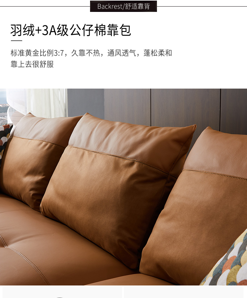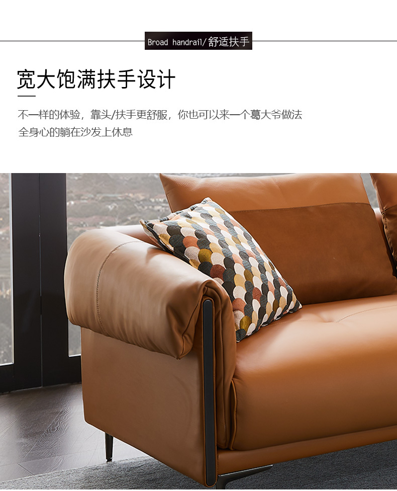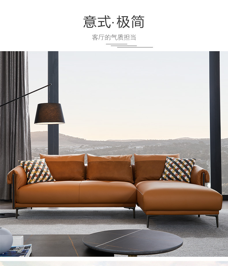 伊信进口头层黄牛皮极简轻奢布艺沙发组合客厅三人小户型现代简约沙发