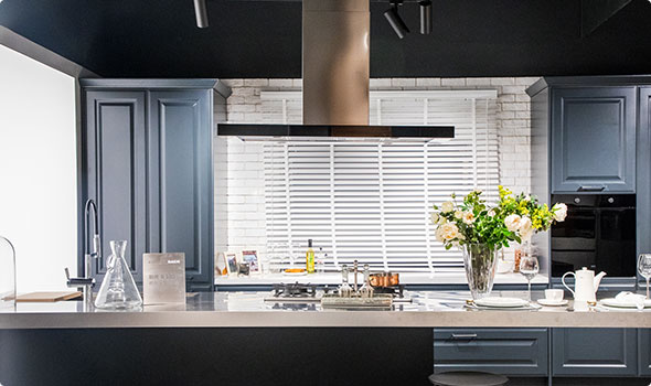从色彩上,奠定整体空间轻奢、高雅的基调,暖蓝色中点缀些许白色,鲜明的对比;在视觉上形成一种平衡感,为厨房空间带来自然质朴而又温暖活跃的气息,演绎属于都市人的优雅生活。
