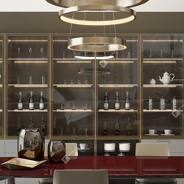 设计理念:以直角线构筑为餐边柜简约的造型,提升整体家居格调的立体感,大面积玻璃材质,凸出了意式家居风格追求的通透感。